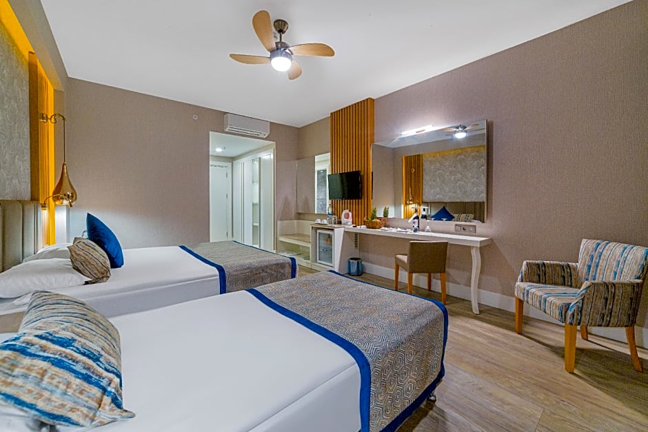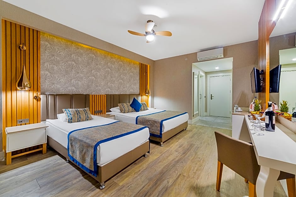 Justiniano Deluxe Resort es un refugio frente al mar de 5 estrellas en Okurcalar, Turquía, ubicado en Okurcalar Turizm Center y a solo 1,5mi del centro de la ciudad. La zona de playa privada y el acceso directo a la playa ponen el mar al alcance, invitando a días relajados junto al agua y a paseos vespertinos con brisa a lo largo de la orilla.